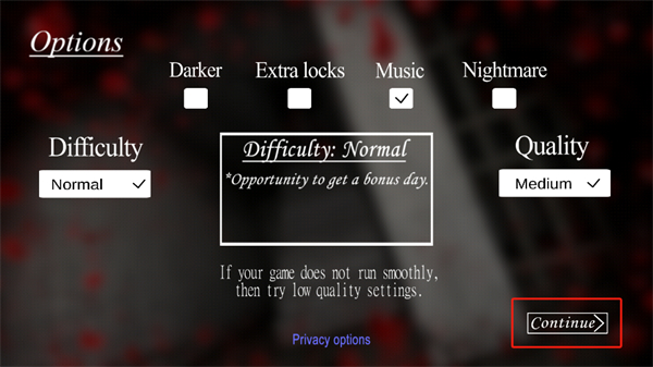 2、順利的進入到游戲難度的選擇頁面之后,玩家將需要進行右下角繼續(xù)按鈕的點擊,以進入到下一個步驟之中;