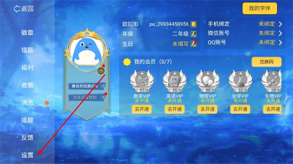 2、進(jìn)入個(gè)人中心頁面后,點(diǎn)擊菜單欄中的設(shè)置選項(xiàng)。
