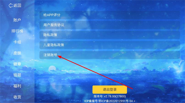 3、在設(shè)置頁面中,找到并點(diǎn)擊上方的注銷賬號(hào)選項(xiàng)。