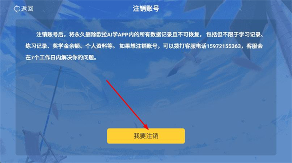 4、在彈出的注銷賬號(hào)提示頁面,點(diǎn)擊我要注銷按鈕。