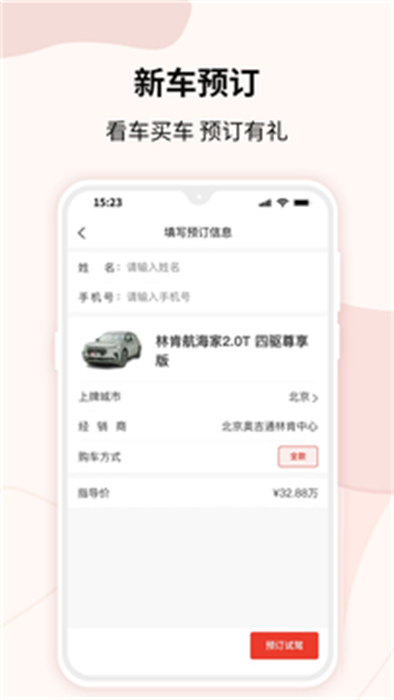 5、試駕預(yù)約:支持試駕預(yù)約,可在軟件上預(yù)約試駕時(shí)間地點(diǎn),體驗(yàn)車輛性能。