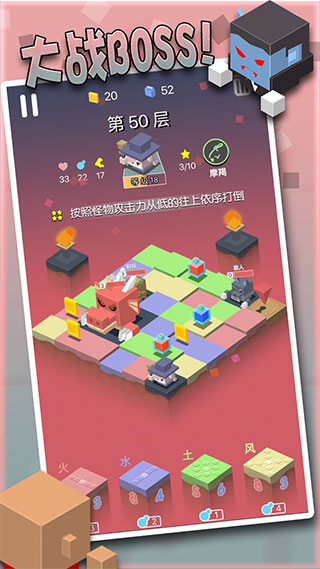 勇者別方游戲是一款充滿以戰(zhàn)棋模式為主的探索類的游戲,別看在一個小小的方格中進行挑戰(zhàn),但是也帶來了不一樣的挑戰(zhàn)畫風變化,該作品中更是以全新的特色挑戰(zhàn)方式為主,在挑戰(zhàn)上勇士需要利用自己的技能不斷升級,在戰(zhàn)場上通過移動避免各種障礙物通向終點,在這里還有各種怪物會不斷的出現(xiàn),利用自己的技能可以擊敗對手獲得更寬的道路進行移動,在有限的步數(shù)中完成到終點的跨越。