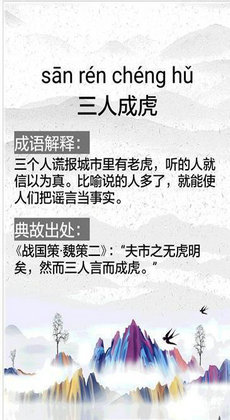 ③、強(qiáng)大搜索,軟件擁有強(qiáng)大的檢索能力,通過關(guān)鍵詞快速查看到成語內(nèi)容;