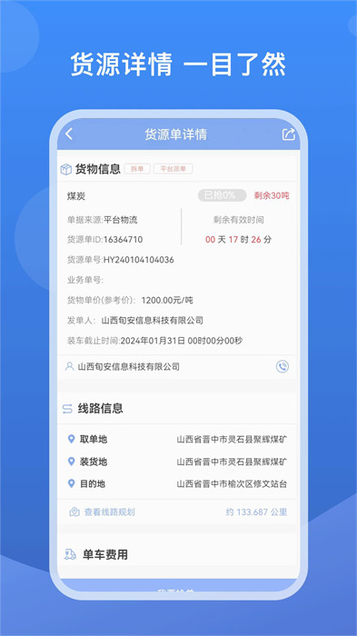 1、可以快速查找旬安的貨源并可以在線上進行接單,提供了在途運單管理;