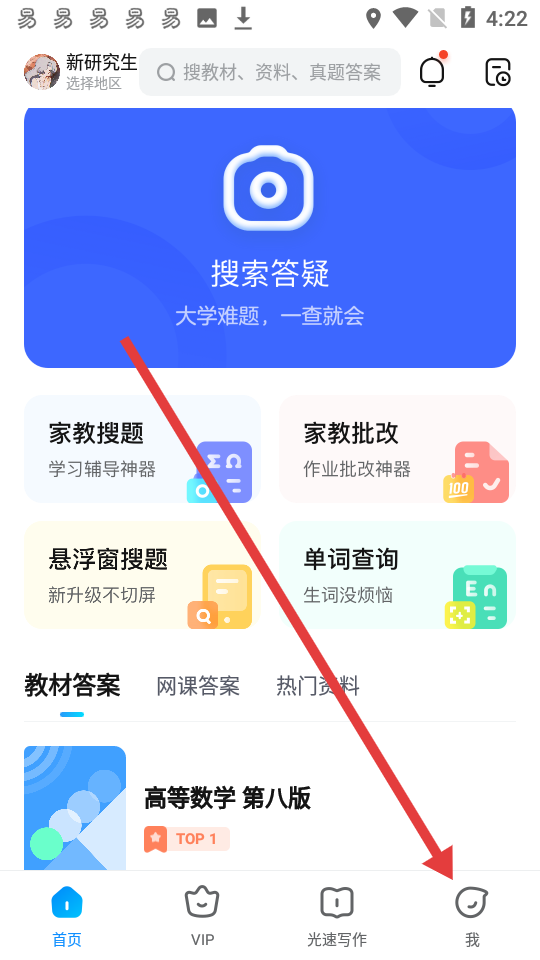 1、打開作業(yè)幫軟件,點(diǎn)擊右下角的我,進(jìn)入個(gè)人頁。