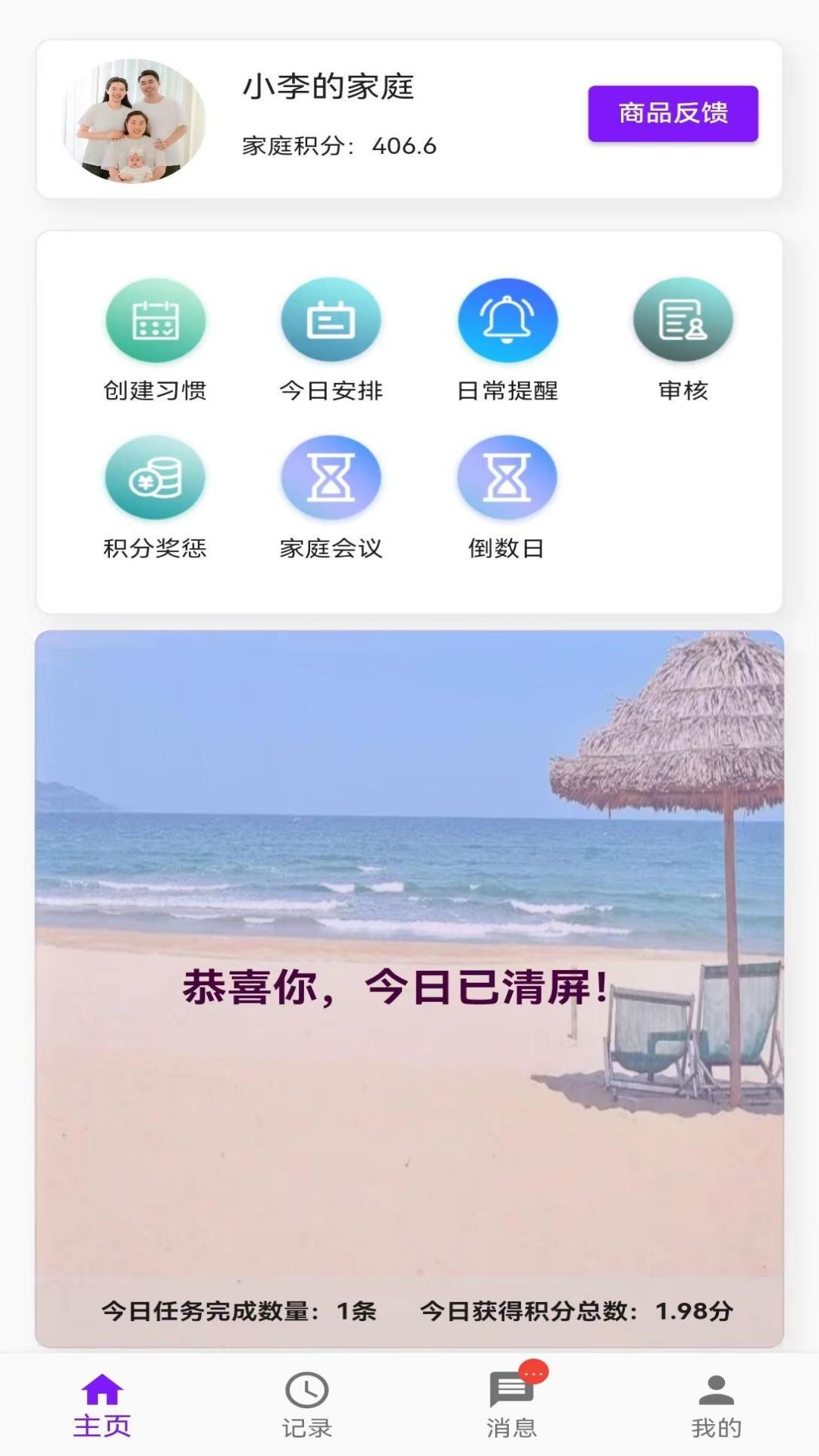 3、家庭積分:每個(gè)成員完成相應(yīng)的任務(wù)后,都可以獲得相應(yīng)的積分作為獎(jiǎng)勵(lì);