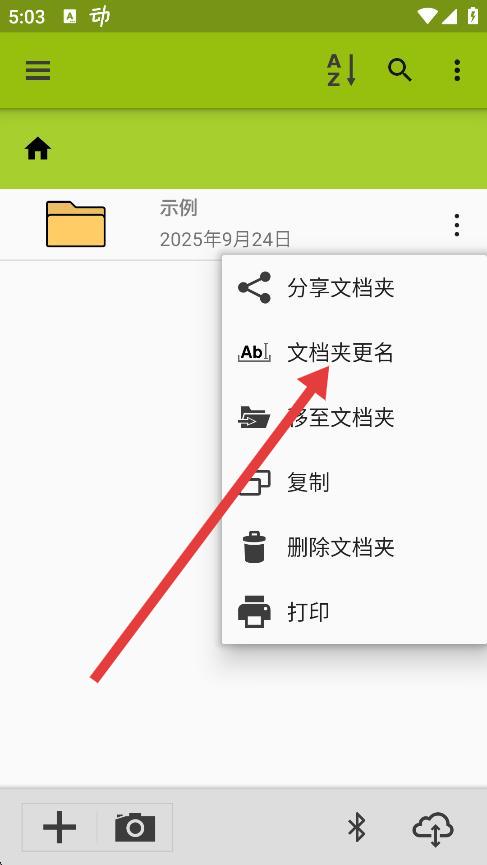 2、在彈出的菜單列表中,點(diǎn)擊文檔夾更名選項(xiàng)。