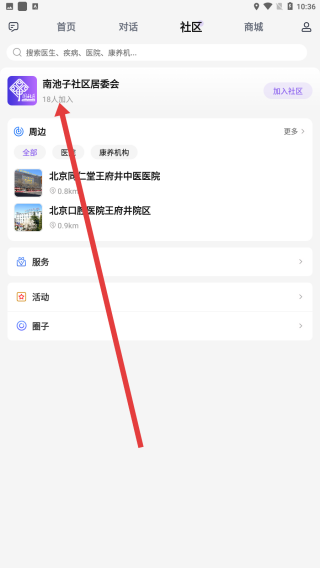 2、進(jìn)入到社區(qū)頁面中,可以點擊箭頭指向的社區(qū)圖標(biāo)區(qū)域查看詳情。