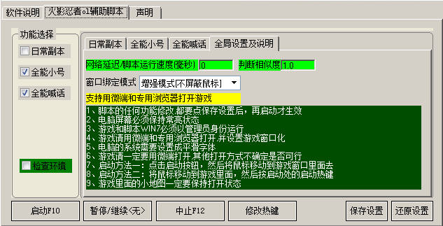 2.腳本的任何功能修改都要點保存設置后,再啟動才生效。