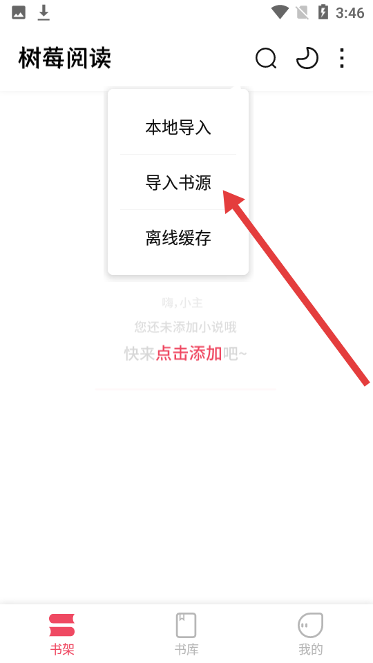 2、在系統(tǒng)彈出的小菜單里,選擇本地導(dǎo)入下方的導(dǎo)入書(shū)源選項(xiàng)。