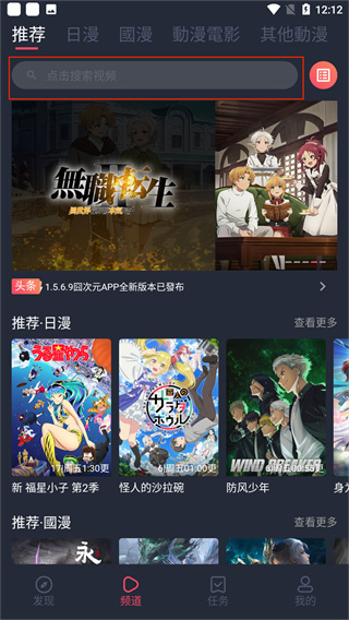 1、通過本站下載囧次元,打開后點擊上面的搜索框,搜索視頻;