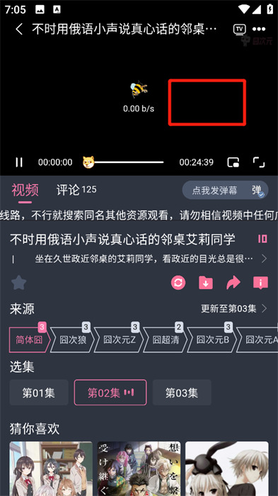 2、進入到軟件之后,映入眼簾的就是軟件的首頁部分,在線點擊一個自己相看的動漫并進入到播放頁面并點擊空白處;