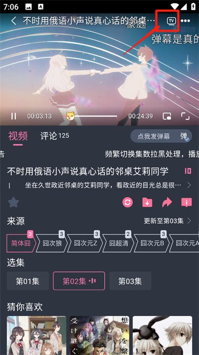 4、進入播放頁面觀看廣告后就可以看動漫了。