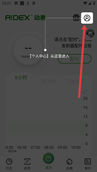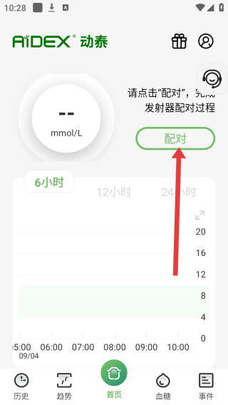 3、在主頁(yè)面中,可以通過(guò)點(diǎn)擊配對(duì)按鈕,進(jìn)入發(fā)射器配對(duì)操作中。