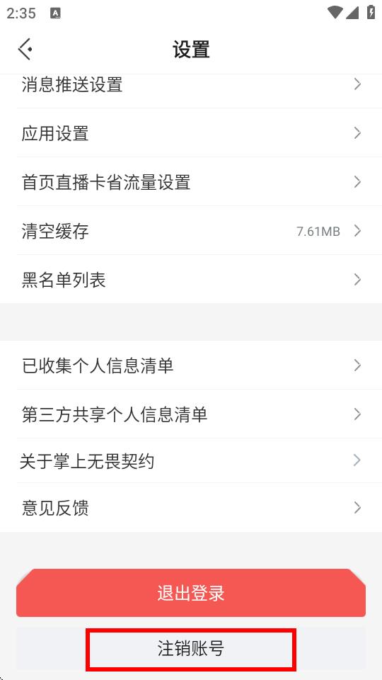 2、在設置頁面中找到,并點擊注銷賬號選項。