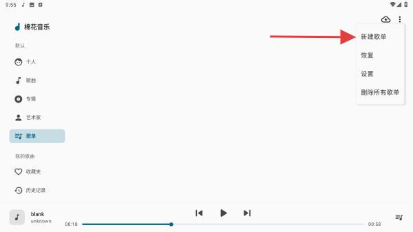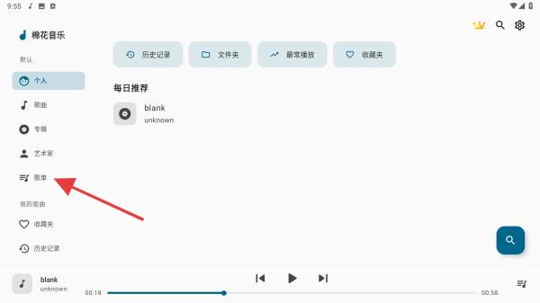1、啟動棉花音樂APP,在首頁左側(cè)的菜單欄中切換歌單的圖標(biāo)。