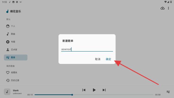 4、在輸入框中輸入歌單的名稱,再點擊確定的按鈕即可完成。