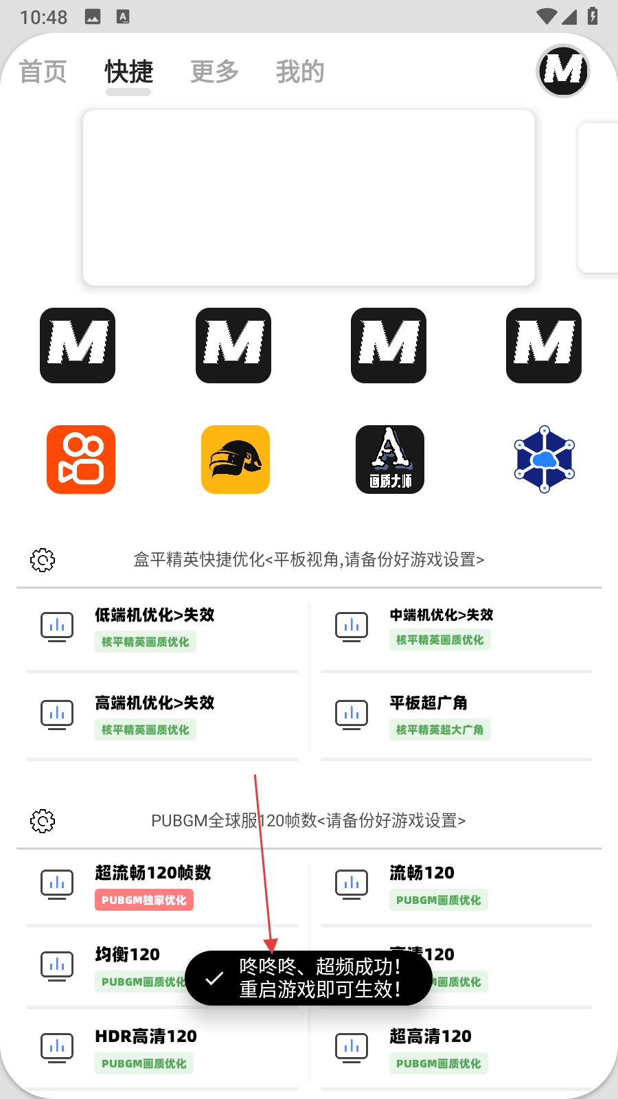 1、打開畫質(zhì)MXPRO應用,點擊頂部快捷選項,進入快捷功能頁面。