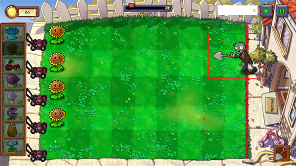 2、進(jìn)階型僵尸,可以用自己手中的鏟子來對植物進(jìn)行挖掘,以快速的拔起植物的根;