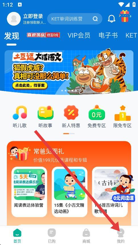 1、打開(kāi)常青藤爸爸早教,點(diǎn)擊底部導(dǎo)航欄中我的,進(jìn)入個(gè)人中心頁(yè)面。