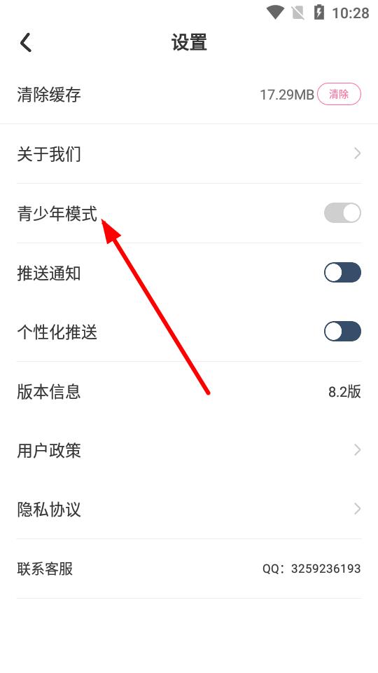 3、進入設置頁面后,找到青少年模式選項并點擊。