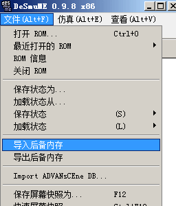 運(yùn)行DeSmuME,打開游戲,選擇導(dǎo)入后備內(nèi)存