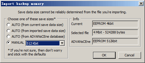 如圖,選擇MANUAL(手動(dòng)) 512Kbit 導(dǎo)入即可