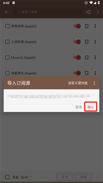 5、導入訂閱源處還能自定義源分組,或者直接點擊確認不分組方便用戶們自行查看導入的書源。
