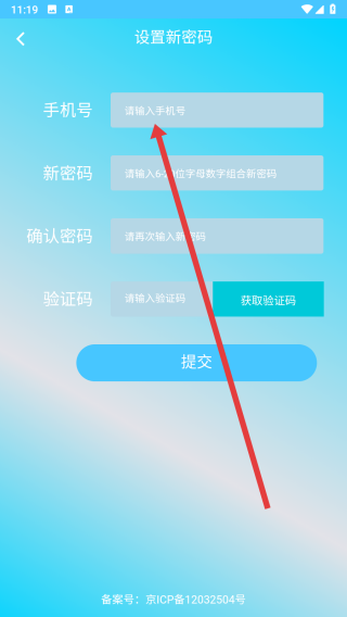 4、可以點擊輸入框依次填寫手機(jī)號和新密碼等信息后,完成新密碼的設(shè)置。
