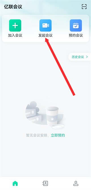 1、打開億聯(lián)會(huì)議APP,點(diǎn)擊發(fā)起會(huì)議,進(jìn)入發(fā)起會(huì)議設(shè)置頁(yè)面。