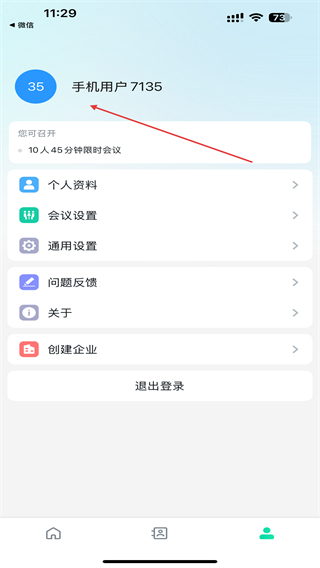 1、打開億聯(lián)會(huì)議APP,進(jìn)入首頁(yè)點(diǎn)擊右下方人像的圖標(biāo)。