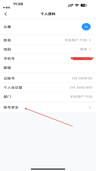 3、進(jìn)入個(gè)人資料的頁(yè)面內(nèi),點(diǎn)擊最下方賬號(hào)安全的按鈕。