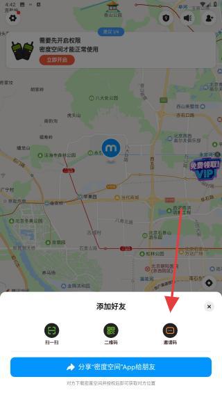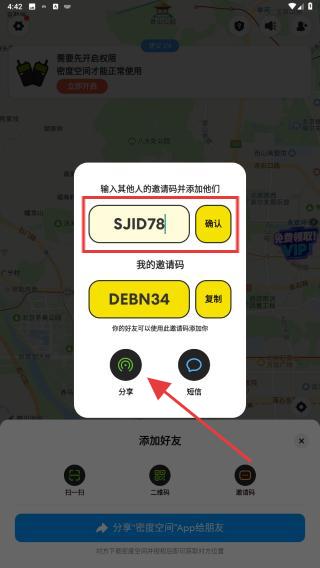 3、輸入他人分享的邀請碼填入其中,再將我的邀請碼分享給好友,點擊分享的按鈕。