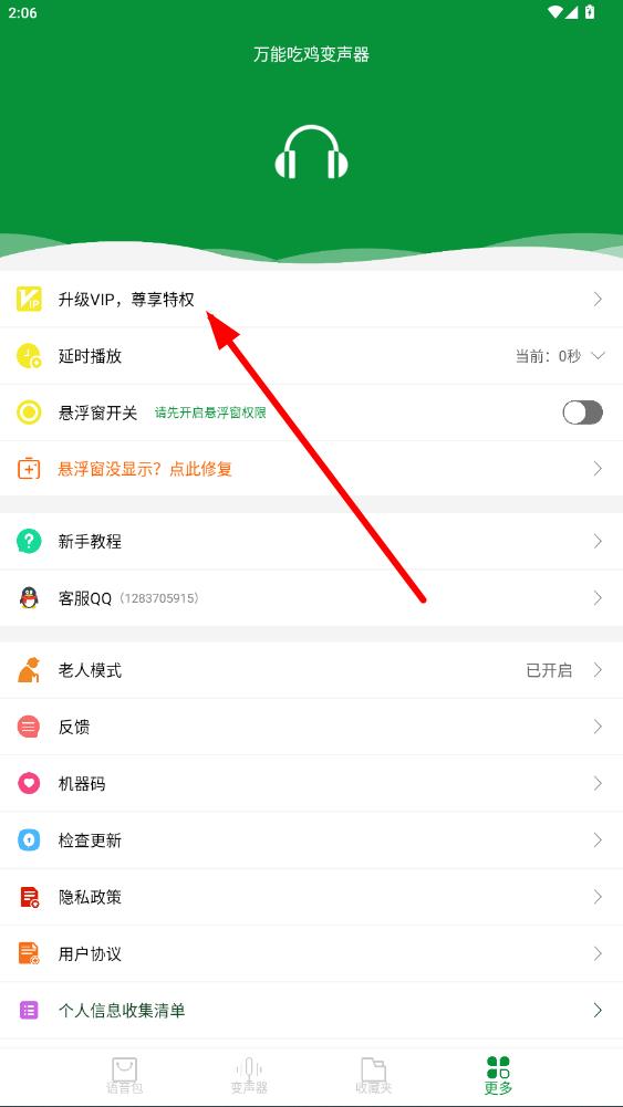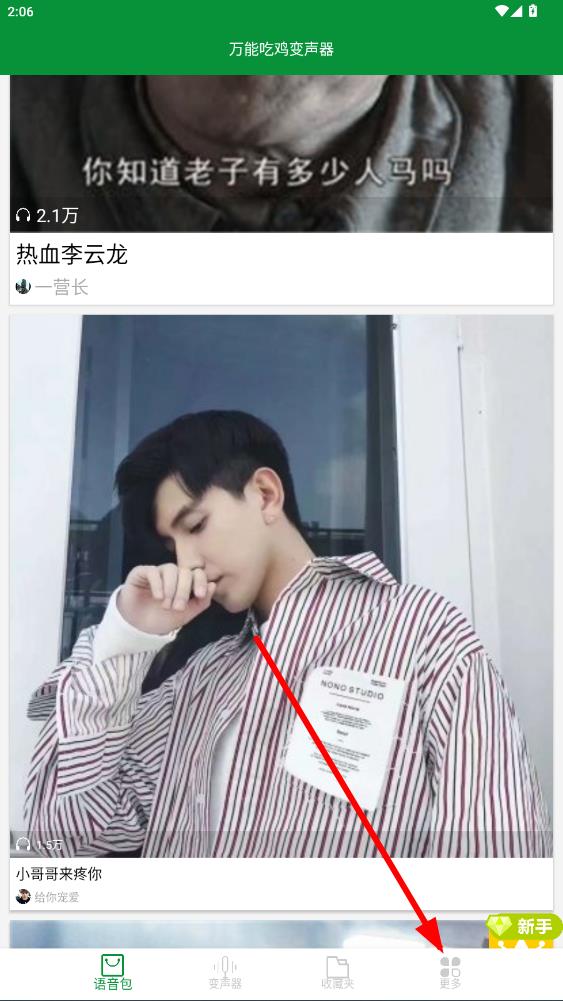 1、打開萬能吃雞變聲器APP,點(diǎn)擊底部導(dǎo)航欄最右側(cè)更多選項。
