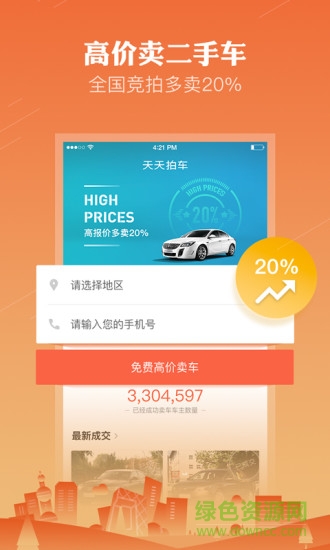 天天拍車,全國(guó)最大的個(gè)人賣車互聯(lián)網(wǎng)服務(wù)平臺(tái)!全國(guó)12個(gè)城市,月評(píng)價(jià)服務(wù)客戶超十萬(wàn)人次!賣車只需輕松點(diǎn)擊,就可足不出戶坐享專業(yè)團(tuán)隊(duì)上門到家服務(wù)。天天拍車擁有3000多家商戶無(wú)線競(jìng)價(jià)拍賣,讓您的愛車價(jià)格一路飆升!30分鐘檢測(cè),1小時(shí)確認(rèn)車況,3分鐘打款!天天拍車,好價(jià),好快,好放心。