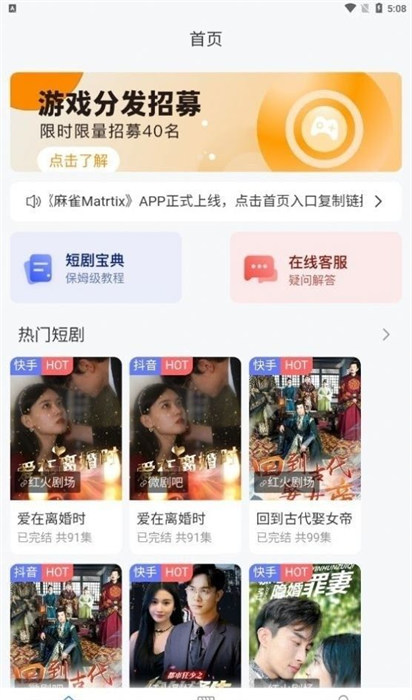 麻雀短劇app是一款十分好用的視頻影音類軟件,是一個專門為了用戶進行觀看短劇的軟件,為用戶提供了許許多多豐富的短劇類型,讓用戶可以隨時滿足自己的觀看需求,可以觀看各種短視頻的軟件,用戶們可以在軟件里面搜索到的資源內(nèi)容是十分豐富的,大部分的短劇都是熱門小說改編的。