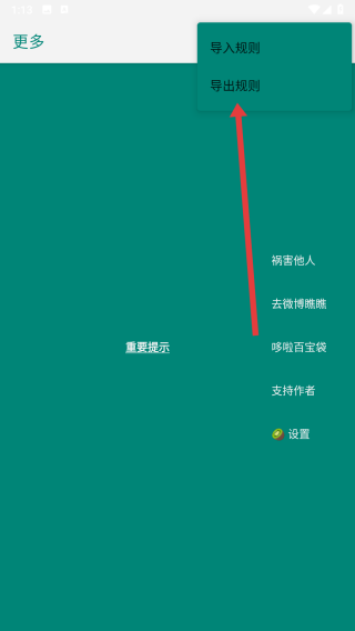3、在展開的功能彈窗中,可以點擊導出規(guī)則選項,進行導出操作。