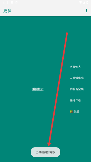 4、在點擊導出規(guī)則選項后,顯示已將規(guī)則復制導出到剪切板上。