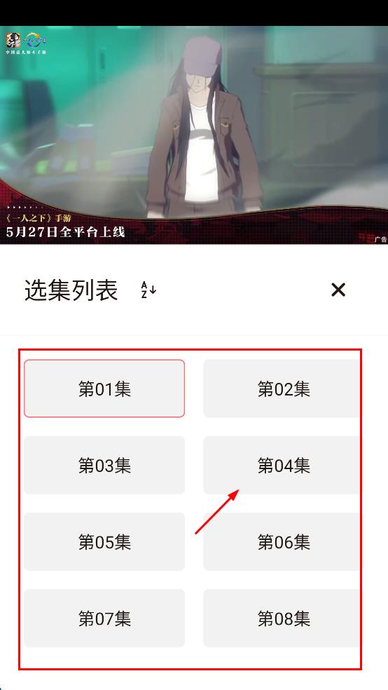 3、進入播放頁面后,找到選集列表,在選集列表里點擊選擇集數(shù)的選項。