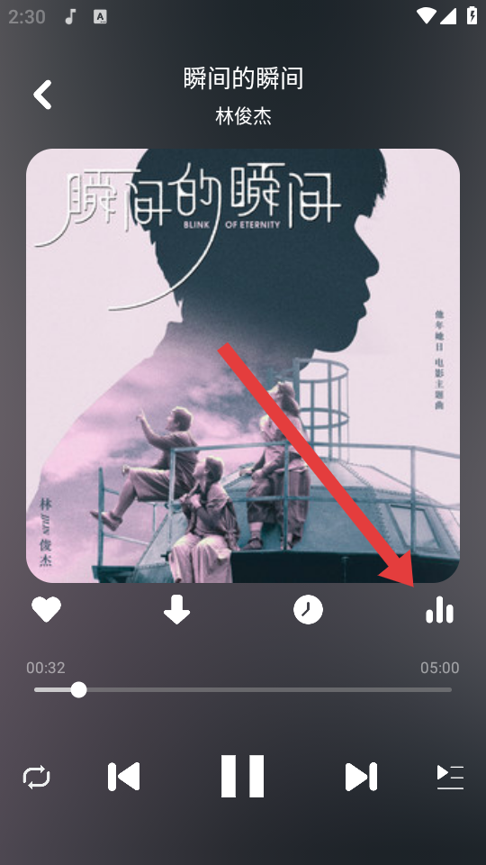 2、在音樂播放界面,點擊右下角均衡器圖標,進入均衡器設置頁面。