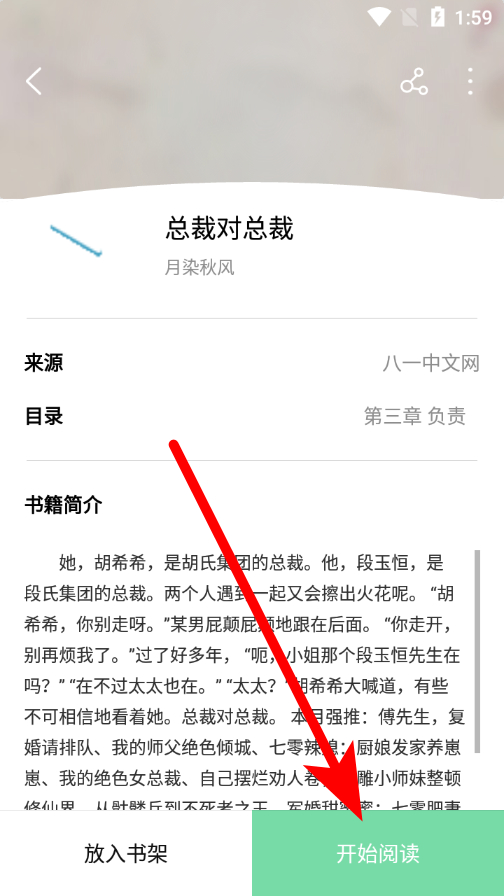 4、在書(shū)籍詳情頁(yè),點(diǎn)擊開(kāi)始閱讀按鈕,即可開(kāi)始閱讀該書(shū)籍。