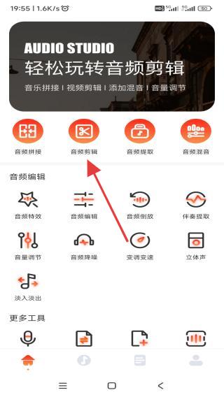 1、啟動魔音音樂APP,在首頁內(nèi)點擊音頻剪輯的功能按鈕。