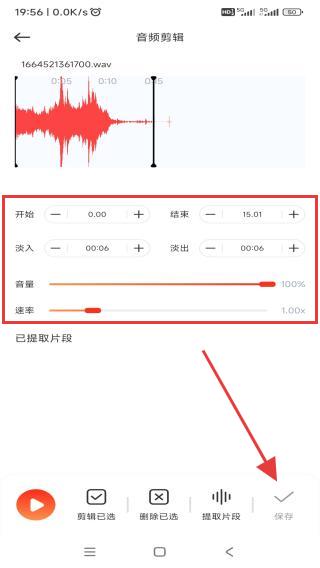4、進入到音頻剪輯的頁面內(nèi),任需進行剪輯,剪輯好后點擊保存的按鈕即可。