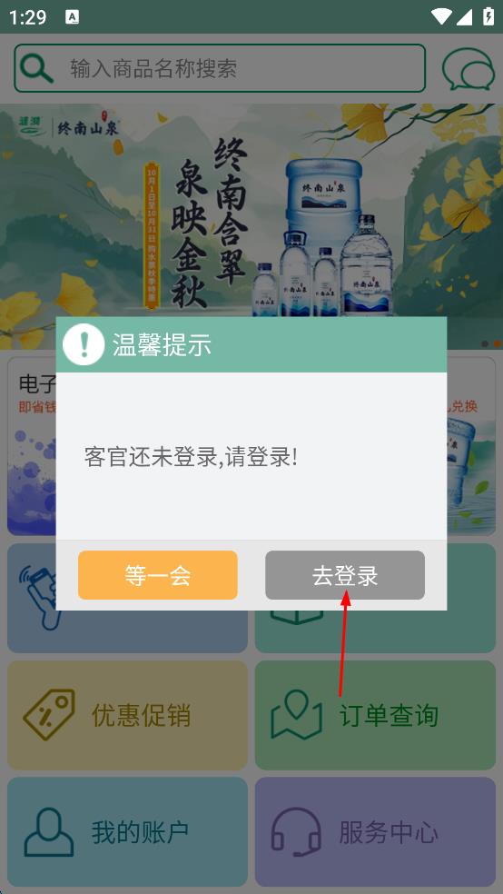 3、在未登錄提示彈窗中,點(diǎn)擊去登錄按鈕,進(jìn)入登錄頁面。