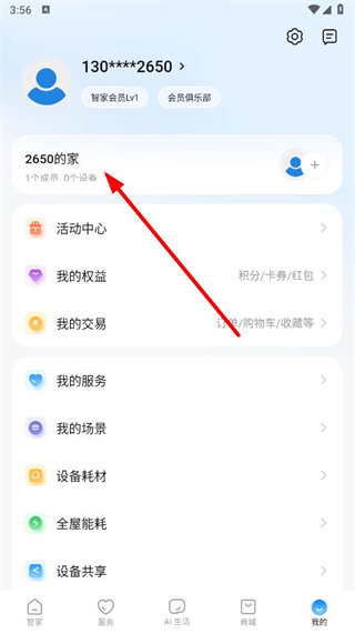 2、在個人頁面點擊家選項,進(jìn)入家庭管理頁面。