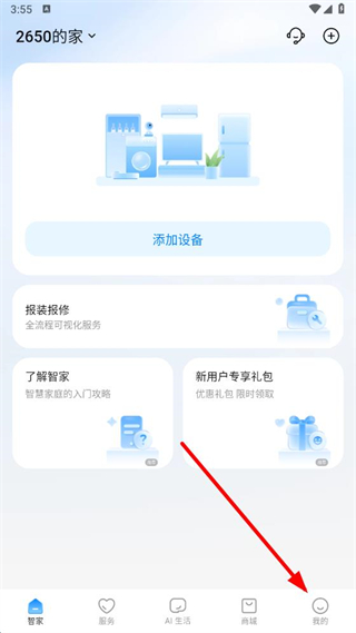 1、在海爾智家app界面點擊我的選項,進(jìn)入個人頁面。