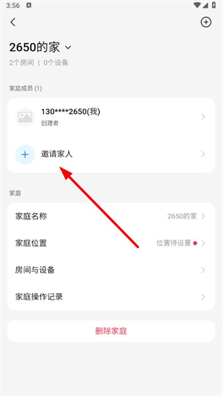 3、在家庭管理頁面點擊邀請家人選項,進(jìn)入家人權(quán)限選擇頁面。