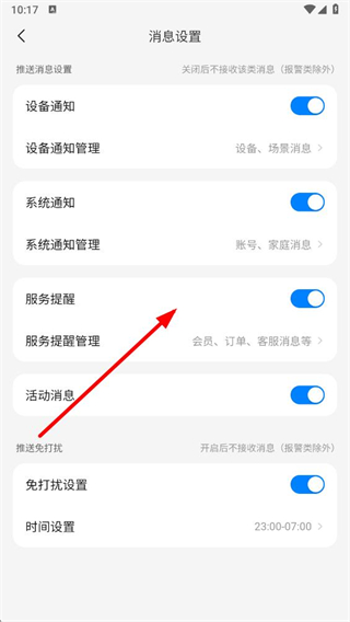 4、在消息設(shè)置頁面,找到要關(guān)閉的消息類型,將其開關(guān)關(guān)閉即可完成消息關(guān)閉操作。