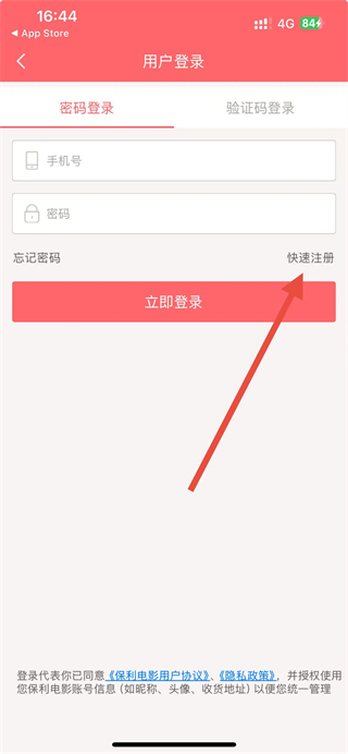 3、在登錄界面里,找到快速注冊選項(xiàng)并點(diǎn)擊,進(jìn)入用戶注冊的操作界面。