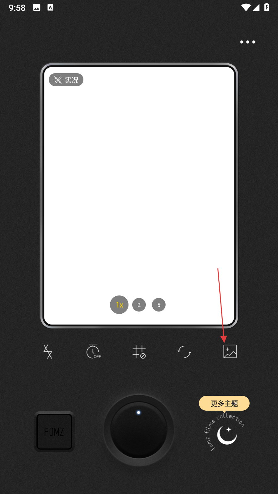 1、打開Fomz軟件,進(jìn)入拍攝界面后,點擊界面右側(cè)的圖片導(dǎo)入圖標(biāo),進(jìn)入圖片選擇頁面。